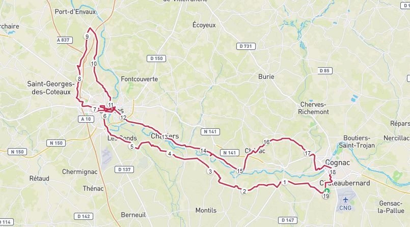 Une petite demi-heure de pause pour nous requinquer et nous voilà repartis pour la boucle du P2 qui nous ramène à Saintes après 23 km.